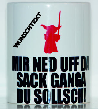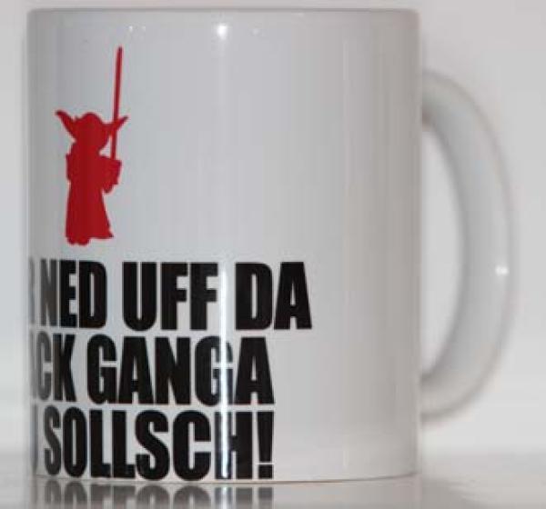 Suchst du nach einem Geschenk, das sowohl humorvoll als auch ein wenig frech ist Unsere Tasse mit dem Spruch **YODA" MIR NED UFF DA SACK GANGA DU SOLSCHT!" ** ist perfekt für alle, die einen guten Sinn für Ironie und Wortwitz haben.