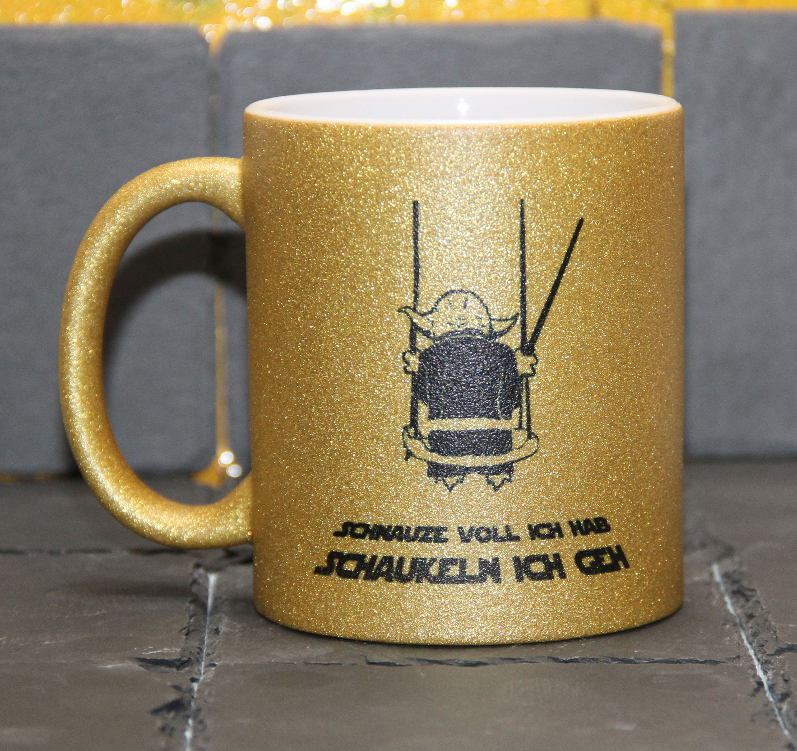 Weiße Tasse mit Spruch  YODA "SCHNAUZE VOLL ICH HAB; SCHAUKELN ICH GEH"