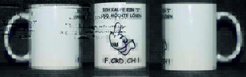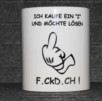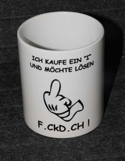 Weiße Tasse mit Spruch  "ICH KAUFE UND MÖCHTE LÖSEN "F_CK D_CH" "