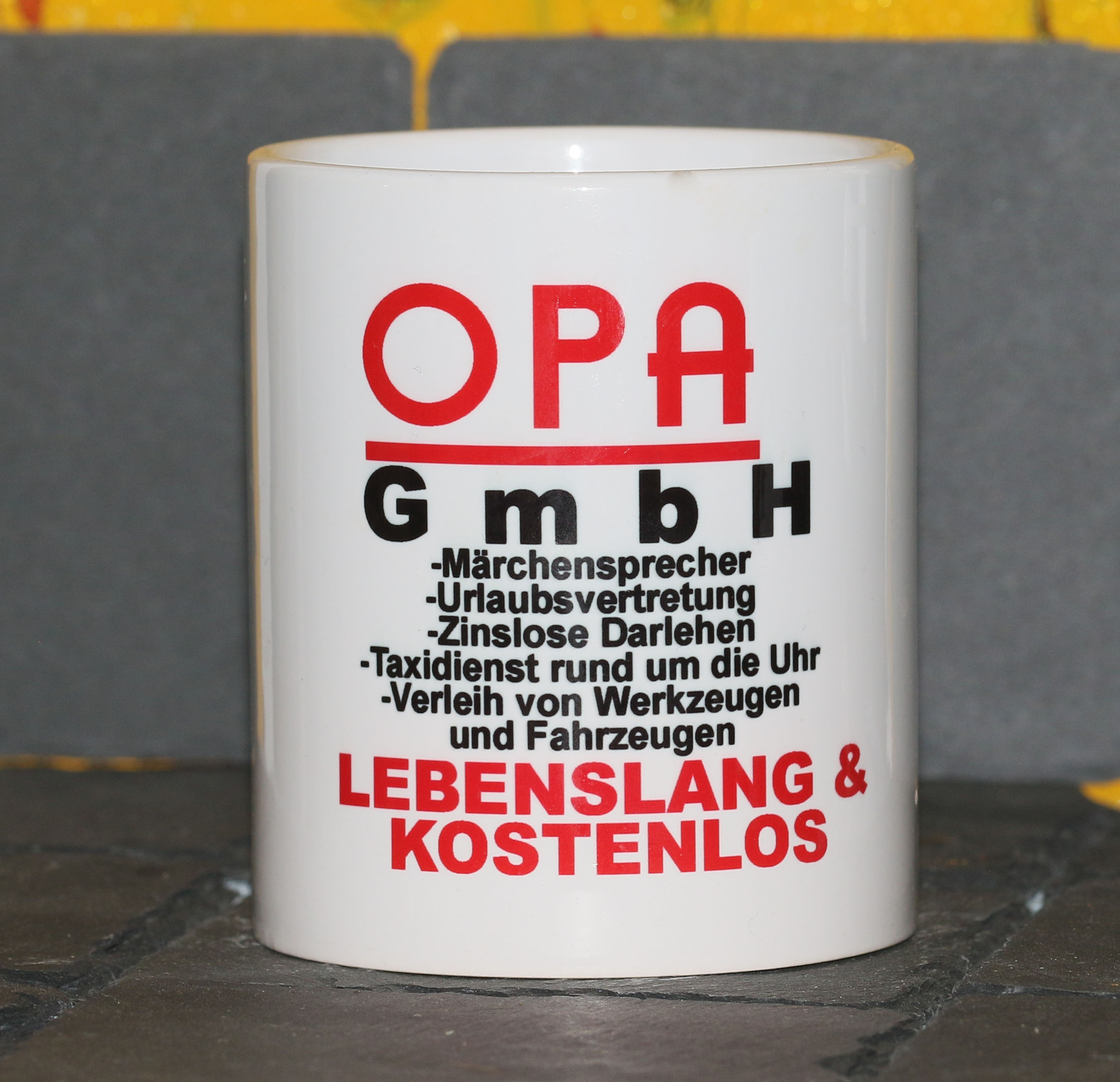 Weiße Tasse mit Spruch  Tasse mit Spruch "OPA GmbH"