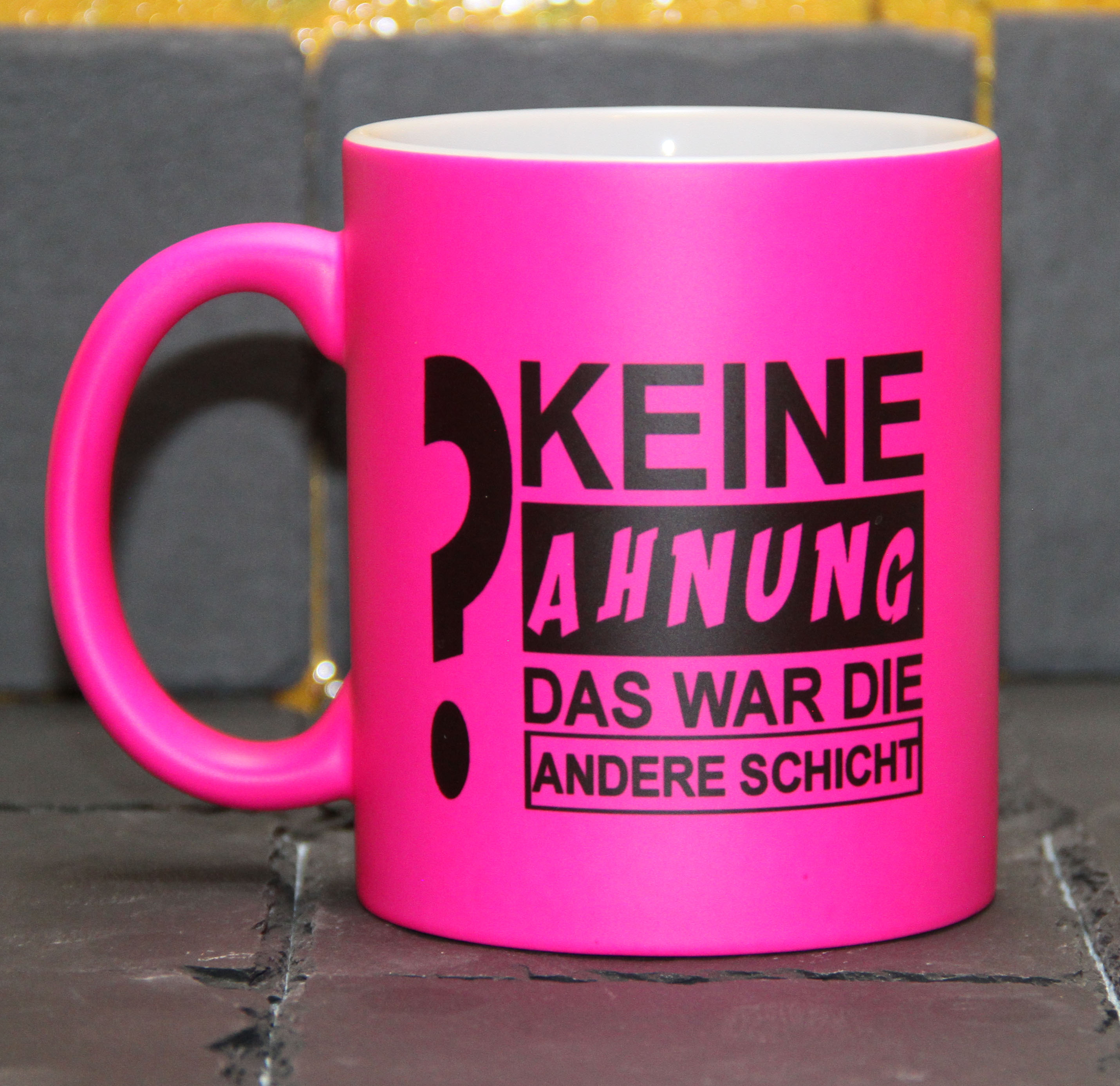 Suchst du nach einem Geschenk, das sowohl humorvoll als auch ein wenig frech ist Unsere Tasse mit dem Spruch **"KEINE AHNUNG DAS WAR DIE ANDERE SCHICHT" TASSE ** ist perfekt für alle, die einen guten Sinn für Ironie und Wortwitz haben.
