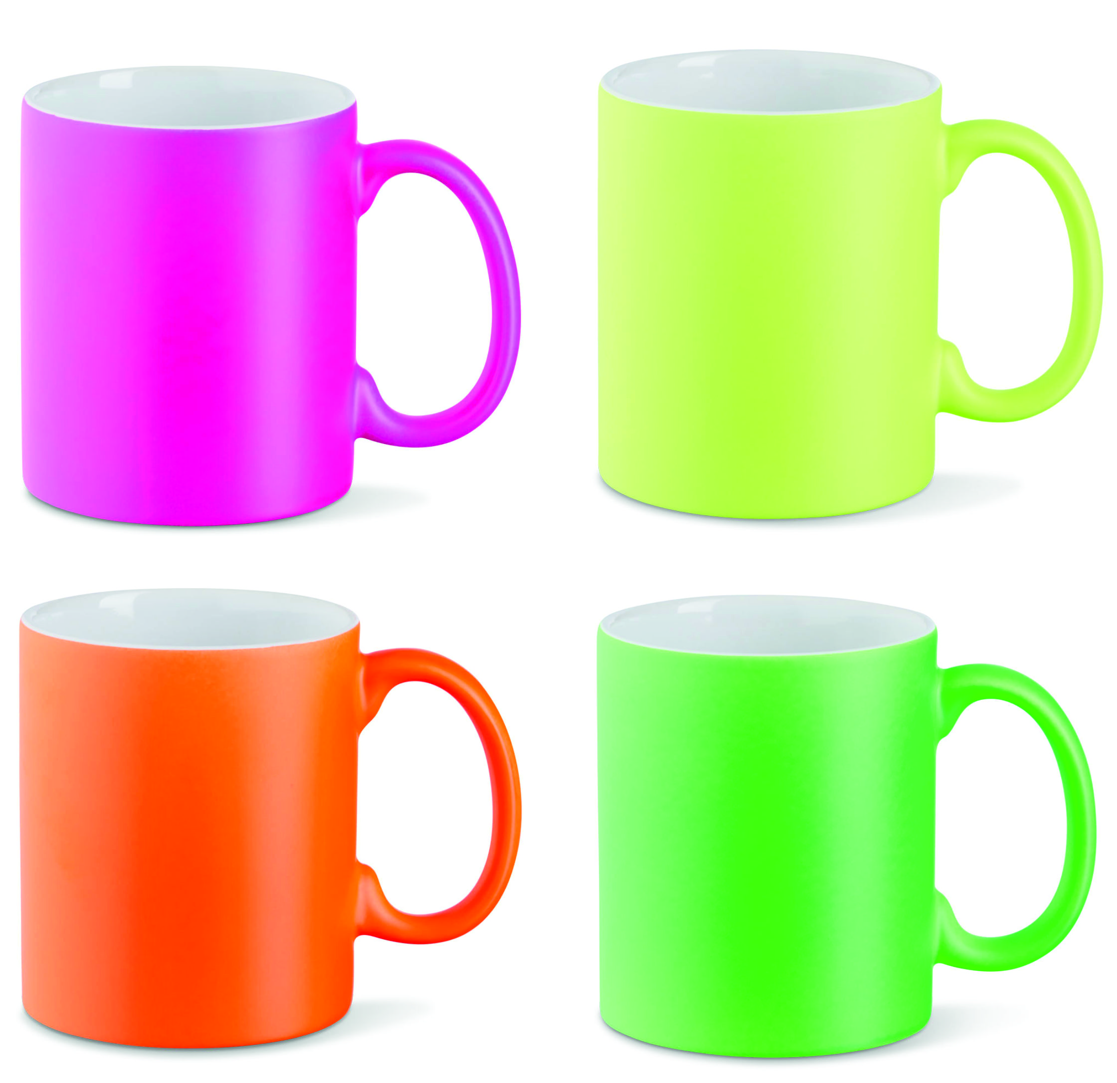 Auffallen heißt die Devise. Die Keramiktasse in den Neonfarben orange, gelb, grün und pink ist ein absoluter Hingucker. Durch die satten Neonfarben mit dem matten Finish kommt das Neon besonders gut zur Geltung. Sie ist sowohl für den Toner- als auch den Sublimationstransfer bestens geeignet.